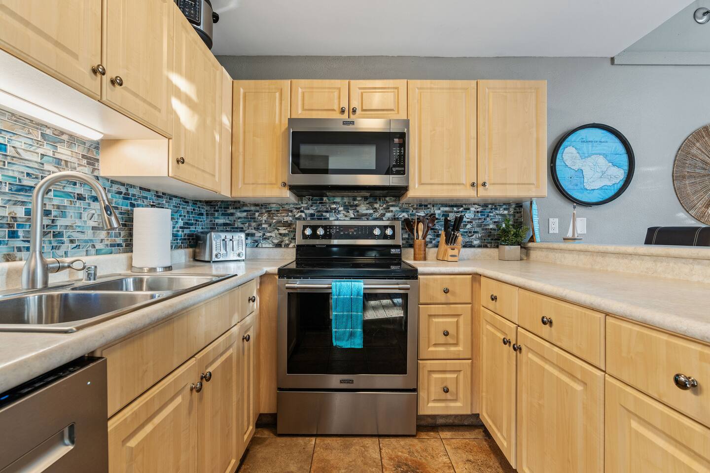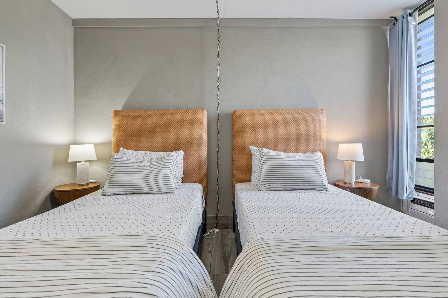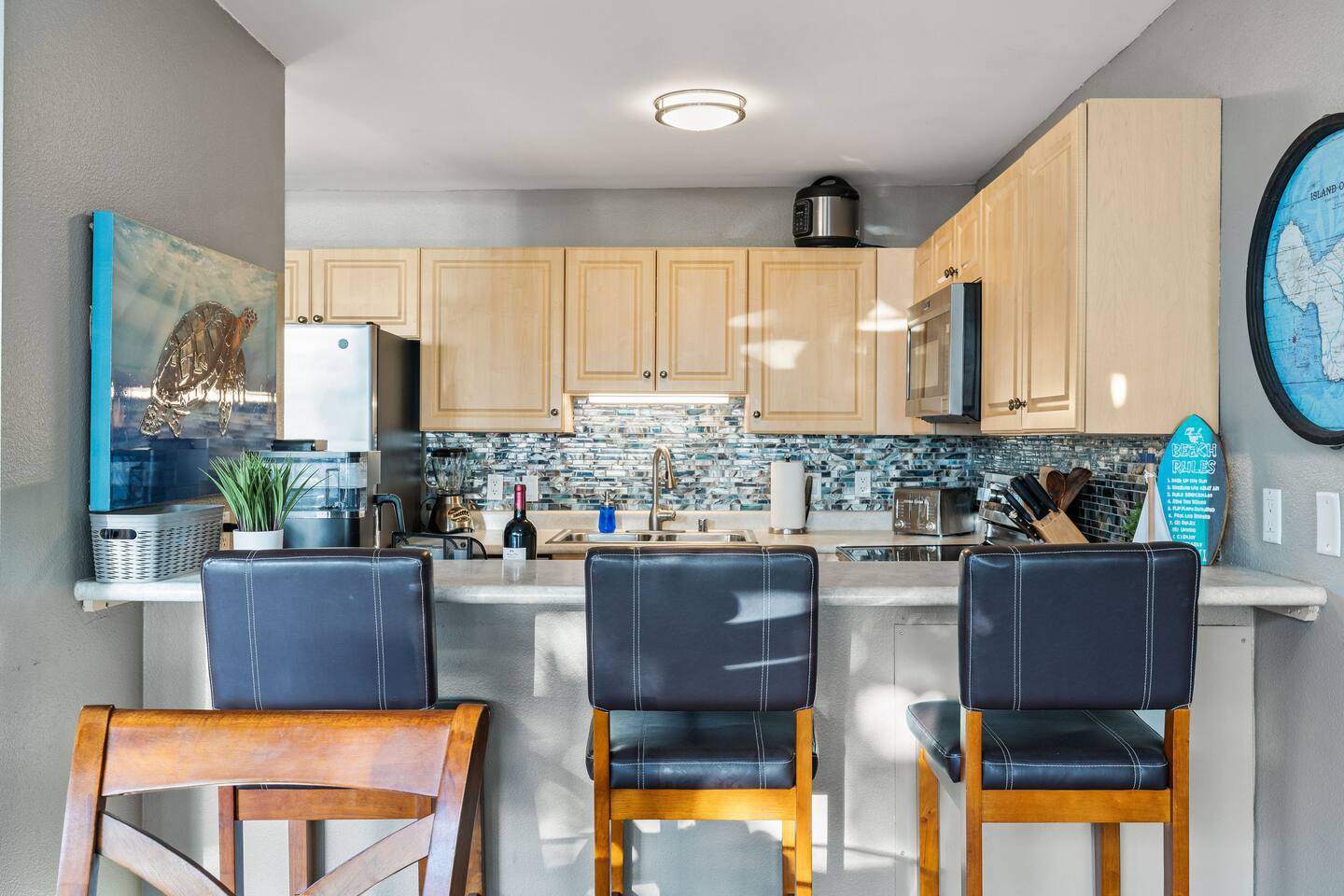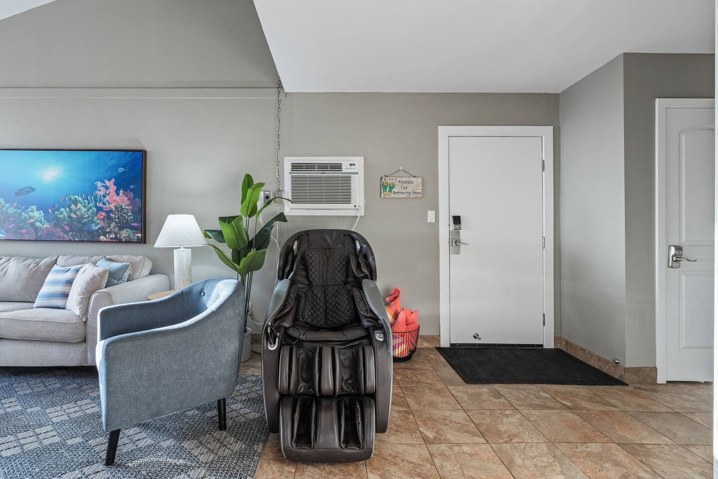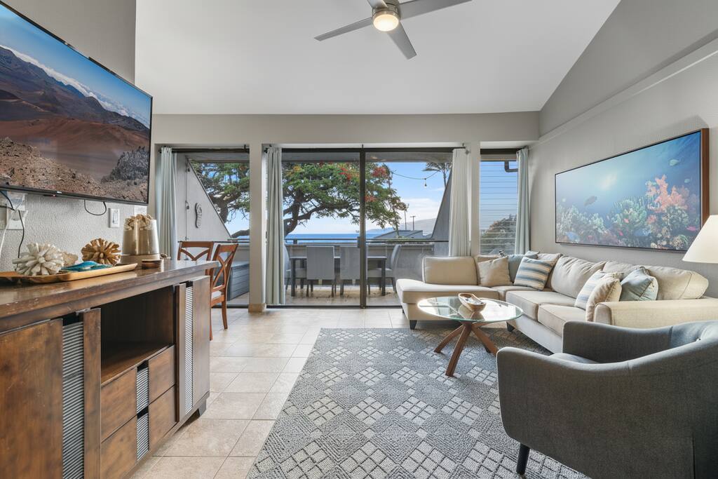 Welcome to your Maui getaway! Step into this stylish 2BR, 1 bath condo, just steps away from an amazing beach. The open-plan living area is designed for comfort, with a fully equipped kitchen, cozy dining space, and a living room that offers ocean views and stunning Maui sunsets. Relax by the pool or enjoy the BBQ grills after a day of exploring. You'll also find beach toys for extra fun! With no extra fees and free parking, this is the perfect spot for a stress-free escape. Living Room: After your flight or a day of exploring Maui, relax in the luxurious massage chair or cozy up on the sofa while enjoying ocean views. Whether you’re watching a movie or spending time with loved ones, this space is perfect for relaxation. ✔ L-Shaped Sofa with Pillows ✔ AC Unit ✔ Smart TV with Netflix and Hulu ✔ Luxury Massage Chair ✔ Coffee Table ✔ Access to the Balcony Kitchen & Dining: The kitchen is fully equipped with modern appliances, ready for anything from a quick snack to a gourmet meal. Enjoy your meals at the kitchen counter or the inviting dining table. ✔ Microwave ✔ Stove & Oven ✔ Refrigerator/Freezer ✔ Keurig Coffee Maker ✔ Dishwasher ✔ Cookware & Utensils ✔ Kitchen Counter with Seating for 3 ✔ Dining Table with Seating for 4 Bedrooms: Both bedrooms are tastefully furnished, offering comfort and convenience after a day of Maui adventures. Master Bedroom: ✔ California King Bed with Linens ✔ AC Unit ✔ Smart TV with Netflix and Hulu ✔ Closet and Spacious Drawers ✔ Nightstands with Reading Lights Bedroom 2: ✔ Two XL Twin Beds with Linens ✔ AC Unit ✔ Closet and Drawers ✔ Nightstands with Reading Lights Bathroom: The full bathroom is stocked with essentials, ensuring a comfortable stay. ✔ Shower ✔ Towels ✔ Hair Dryer ✔ Body Wash, Shampoo, Conditioner ✔ Washer and Dryer Balcony: Step out onto the private balcony to soak up the sun and enjoy the views. Whether you’re sipping coffee, dining, or whale-watching (November-May), this space offers a perfect outdoor retreat. ✔ Table and Chairs ✔ Beach Essentials: chairs, umbrella, boogie boards, and more We’re excited to host you! Feel free to reach out with any questions. Happy travels!